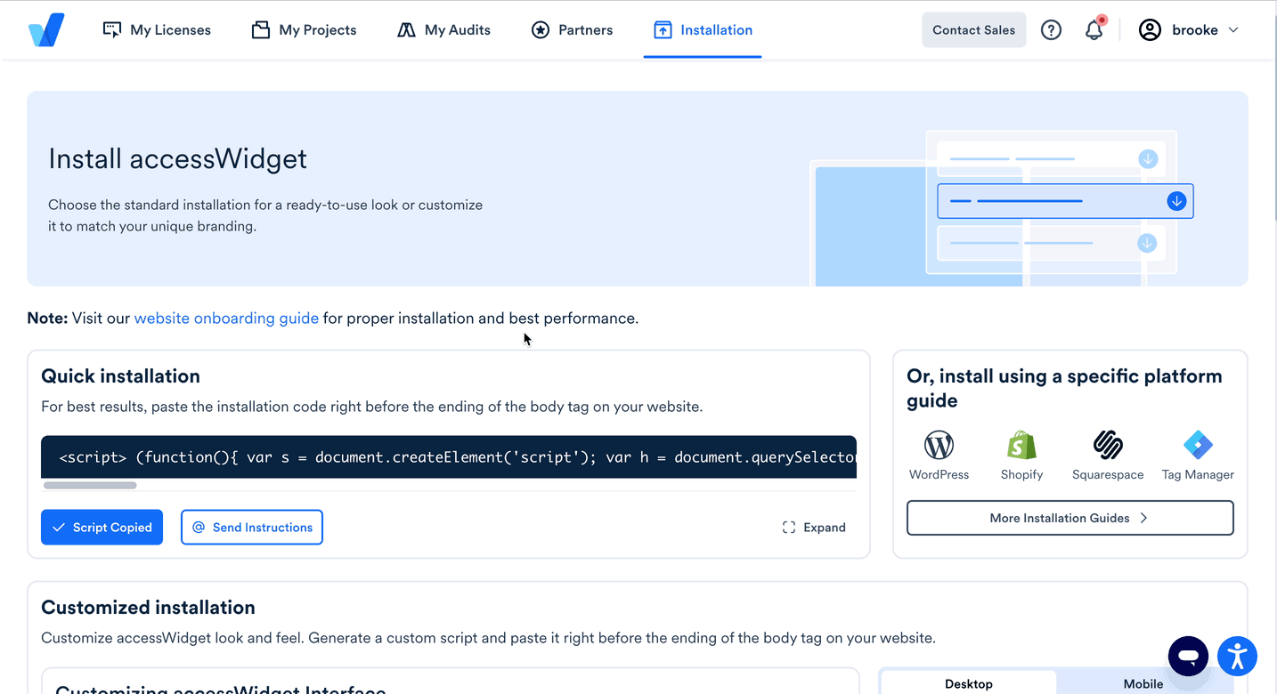 Then you can just copy your code and follow the instructions accessiBe provides to add the widget to your Squarespace site. You can also send the instructions right to your web developer from the accessiBe site, which I thought was a nice feature!